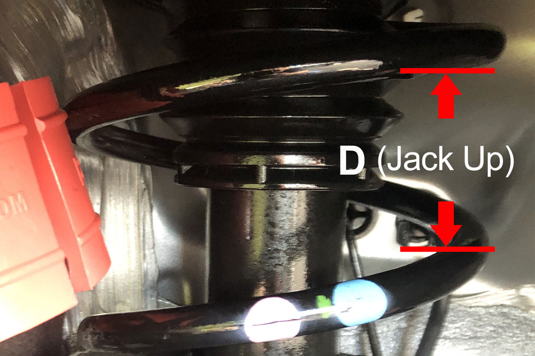 - Release the Jack (Stand), and return the tire to the ground. There should be around 0.5” ~ 1.5” lift, depend on spring type once it is bearing the car’s weight.