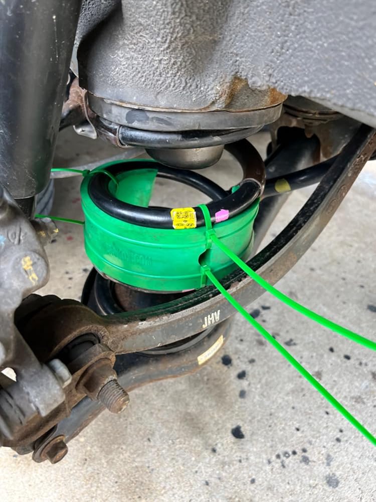- Super Grade Green DuraTPE® Super Material with full ring design, reinforces Automotive Coil Spring Buffers/shock absorbers (2pc. Per pack – multiple size options available).