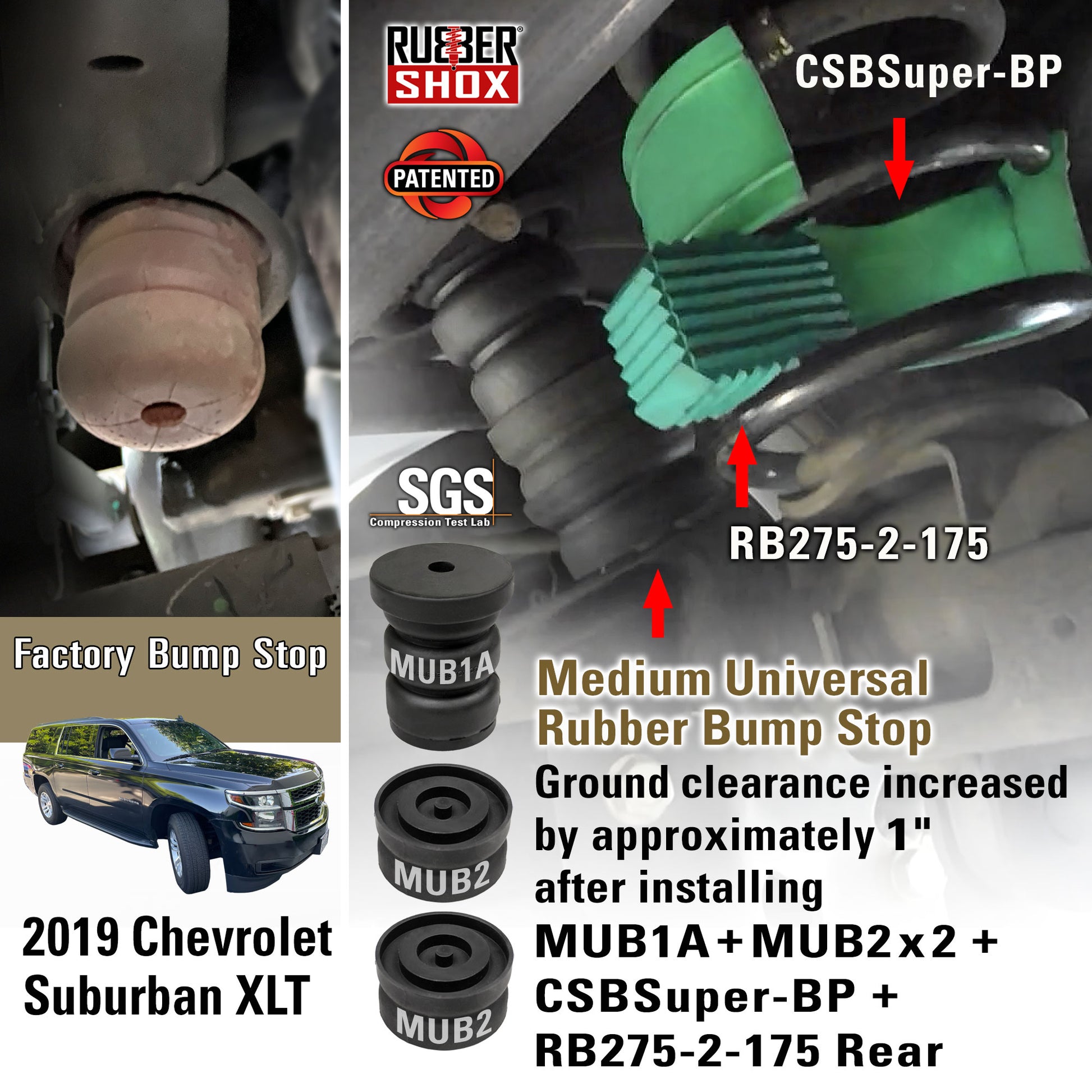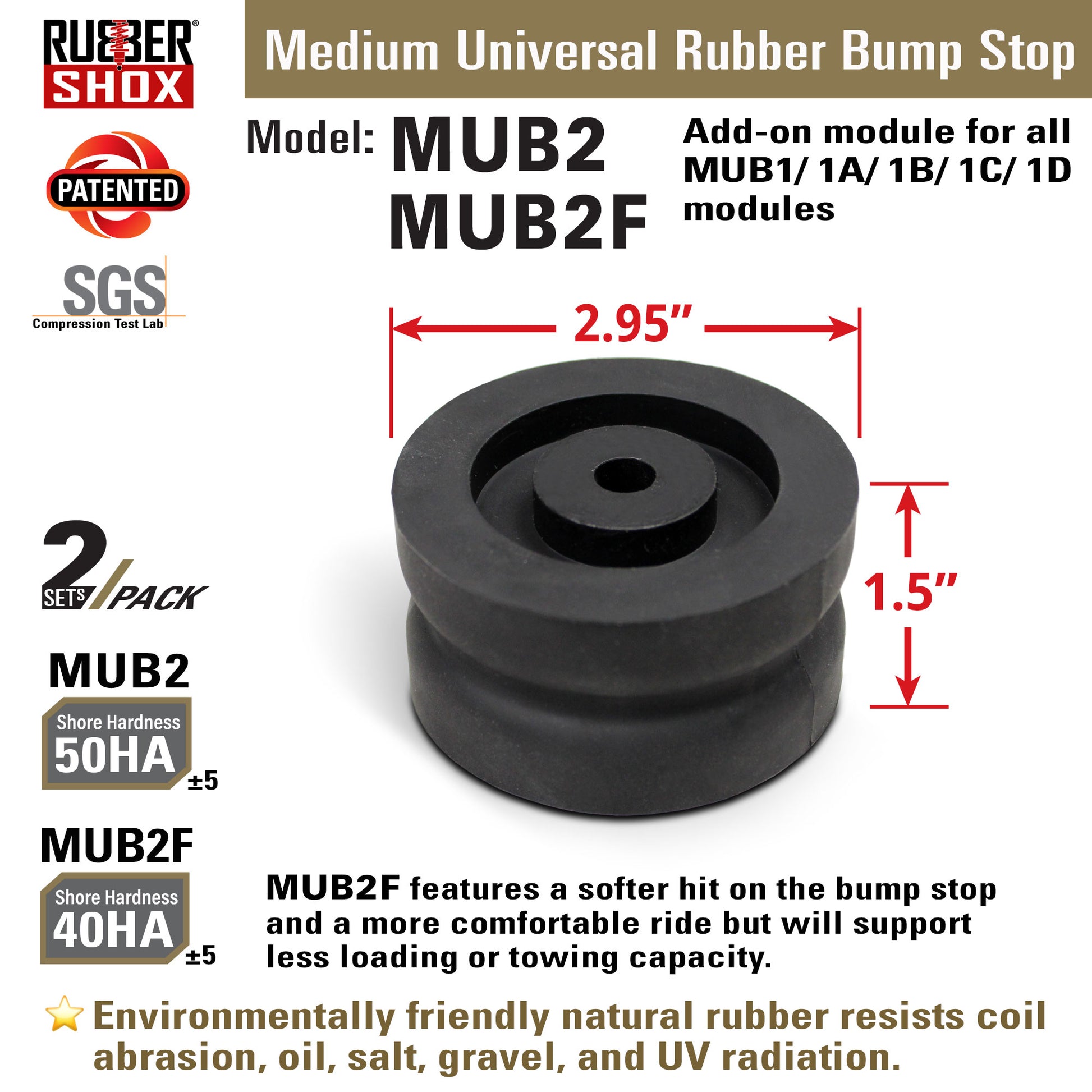 - RubberShox Modular Universal Medium Rubber Bump Stops for Light Truck and SUV Suspension Enhancement.